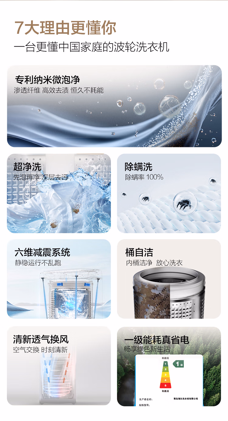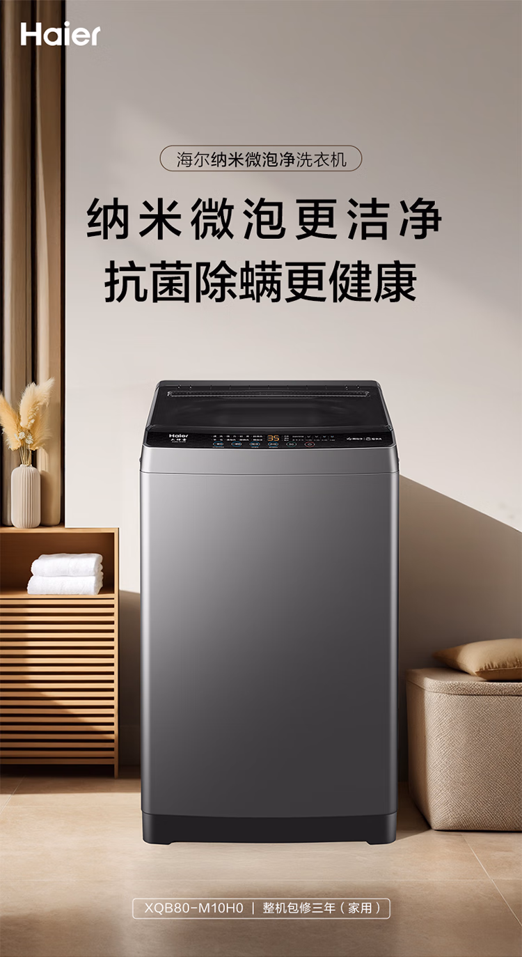 海爾/Haier XQB80-M10H0 洗衣機波輪洗衣機8公斤25年新品 全自動一級能效家用大容量超凈洗